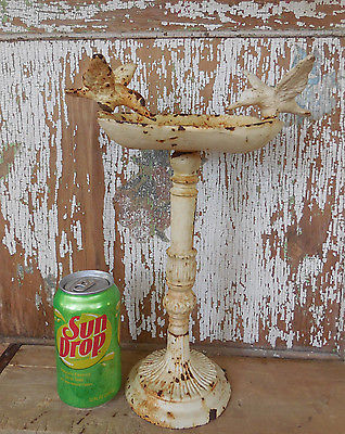 OLD PRIMITIVE CAST IRON HUMMINGBIRD BIRD BATH CHIPPY PAINT RUSTY GARDEN DISPLAY