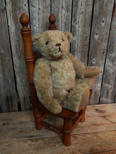 Title (ebay affiliate link): Antique Primitive Old Toy Doll Chair & Jointed Signed Teddy Bear