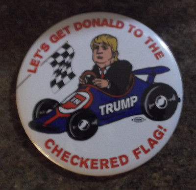 Title (ebay affiliate link): 2016 Republican DONALD TRUMP for President INDIANA Race Car Caricature Button