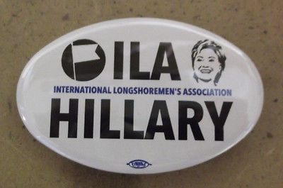 2016 Democrat HILLARY CLINTON for President ILA INT'L LONGSHOREMEN Union Button
