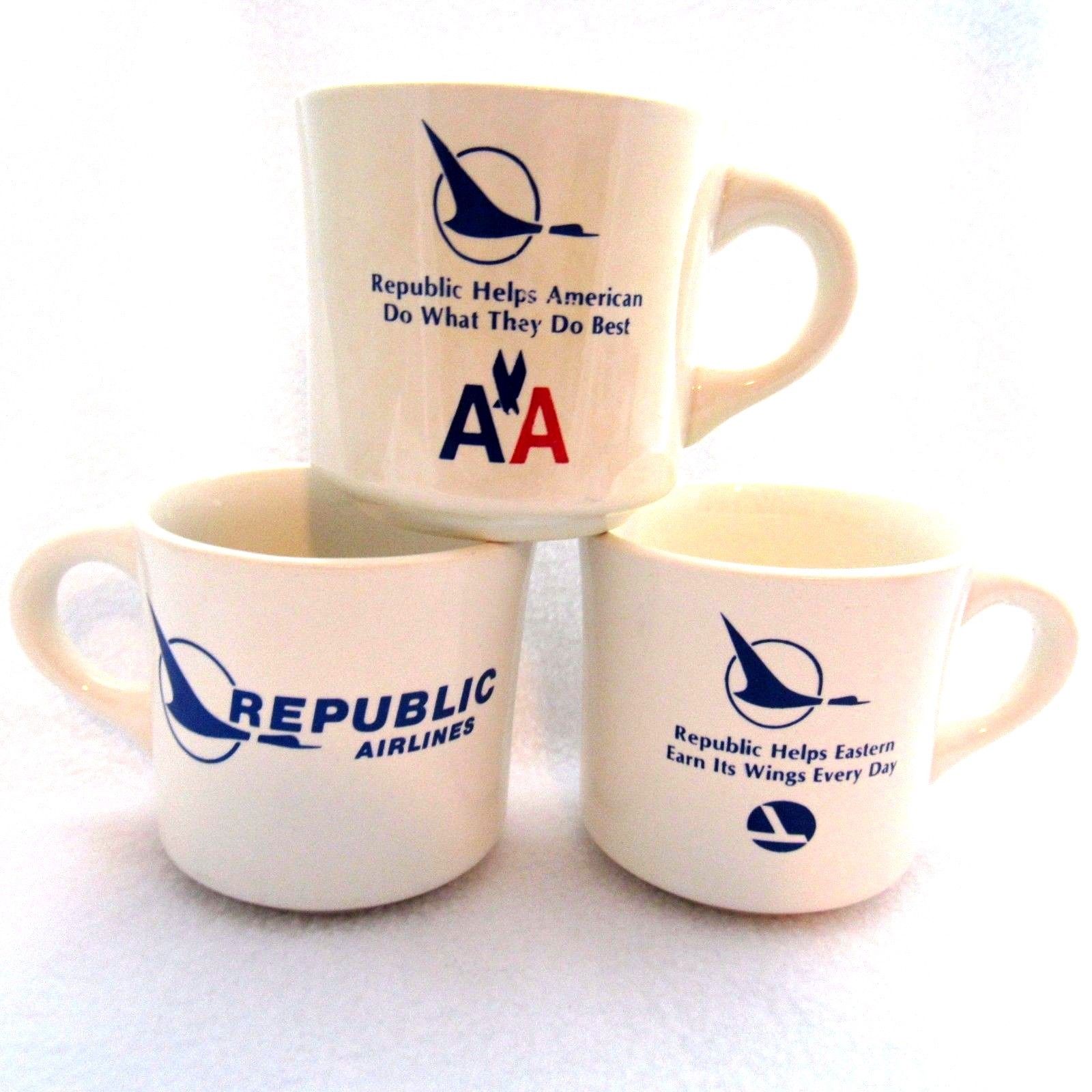 Title (ebay affiliate link): Lot of 3 Vintage AIRLINE Coffee/Tea Mug Cup Republic, AA, Eastern MARKED USA