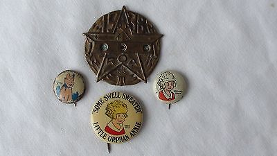 Vintage Little Orphan Annie 1938 ROA Decoder Badge/3 Pinbacks/Sandy Dog Pin/PEP