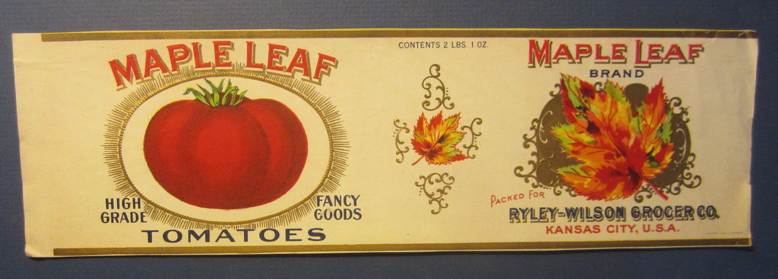 Title (ebay affiliate link): Old Vintage 1923 - Maple Leaf - Tomatoes Can LABEL - KANSAS CITY - CALVERT