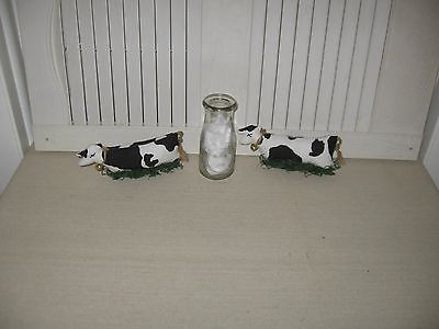Handmade Primitive Bowl Fillers/Ornies Cows w/glass bottle of Milk Set of 3