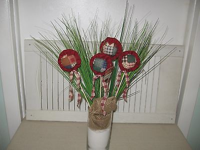 Title (ebay affiliate link): Handmade Primitive Bowl Fillers Wine Color Flowers Set of 4