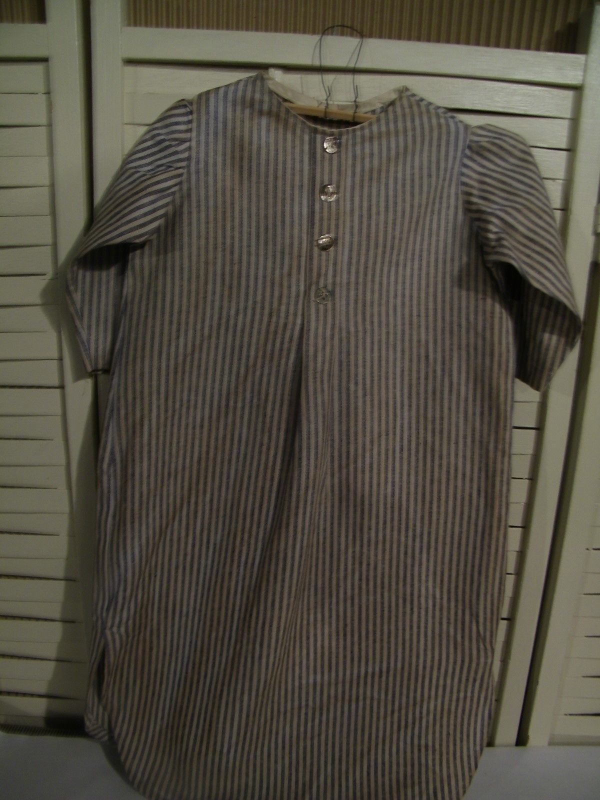 Title (ebay affiliate link): Primitive prairie little night shirt blue ticking stripe tea stained