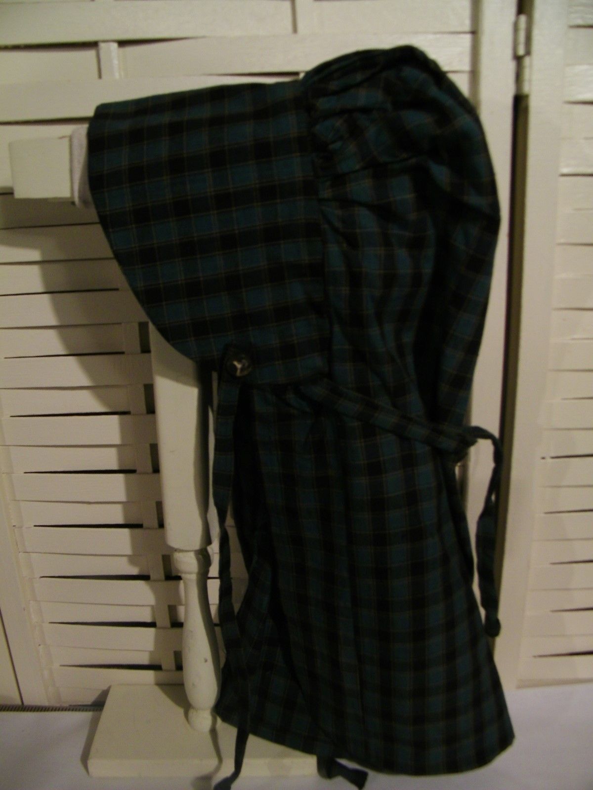 Title (ebay affiliate link): primitive prairie bonnet tea stained pioneer green/black plaid homespun