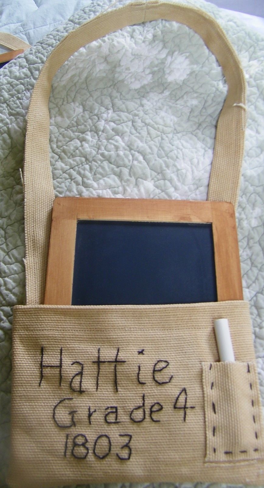 Primitive prairie little pioneer school days book bag chalk board Hattie