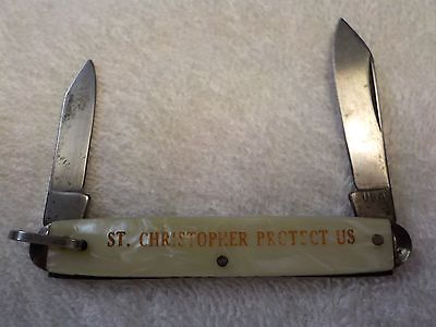 Vintage St. Christopher Protect Us key chain 2 blade pocket knife