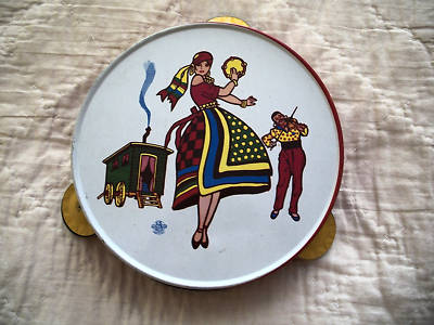 EXCELLENT++++ / NEAR MINT CHILD'S TOY "TIN" TAMBOURINE
