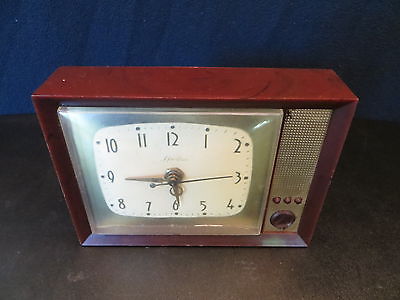 VINTAGE 1950s OLD ANTIQUE SWIRLED PLASTIC BAKELITE WORKING TELEVISION CLOCK