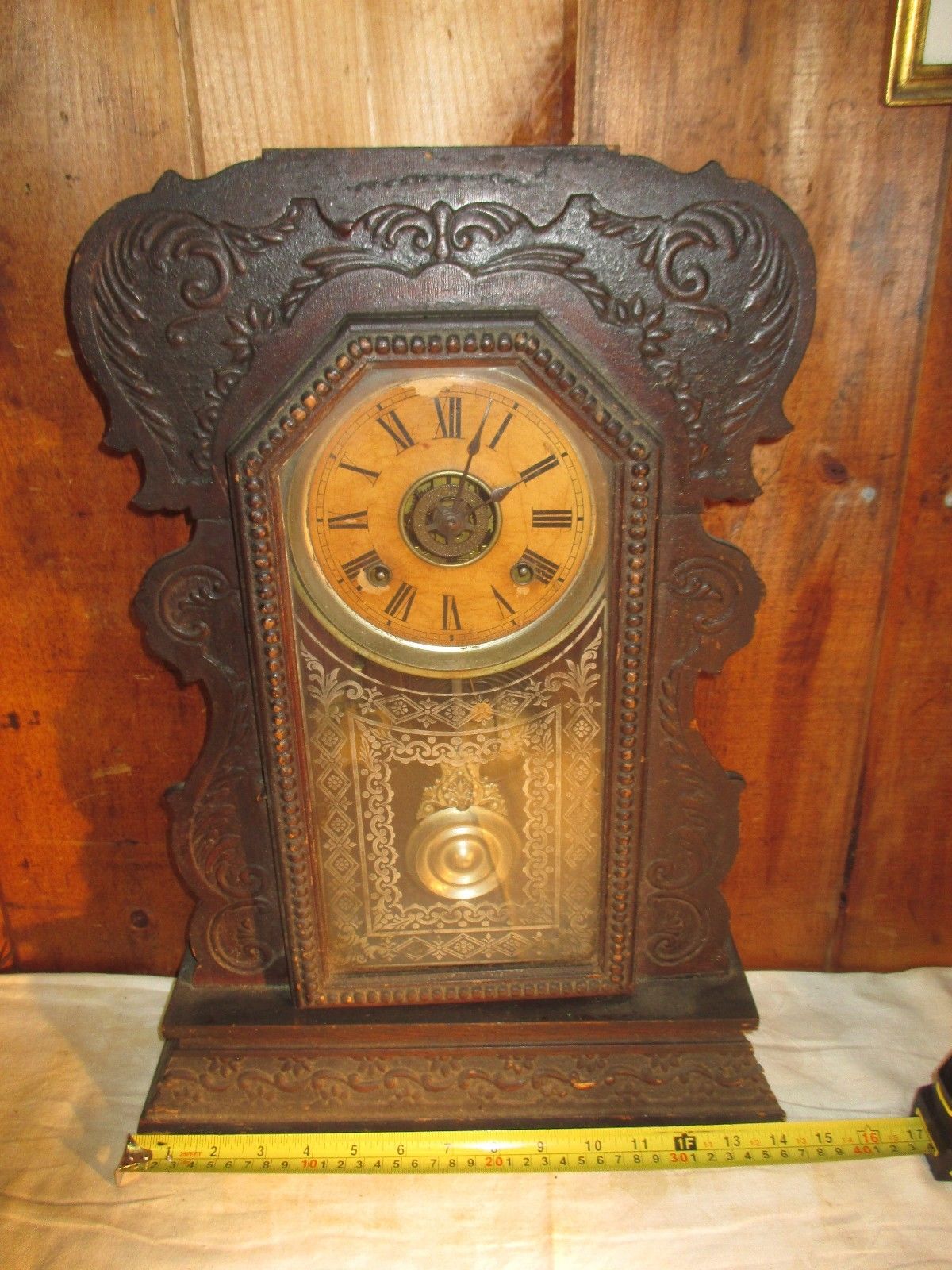 Title (ebay affiliate link): ANTIQUE ANSONIA MAHOGANY GINGERBREAD WALL OR MANTEL CLOCK 4 PARTS OR REPAIR