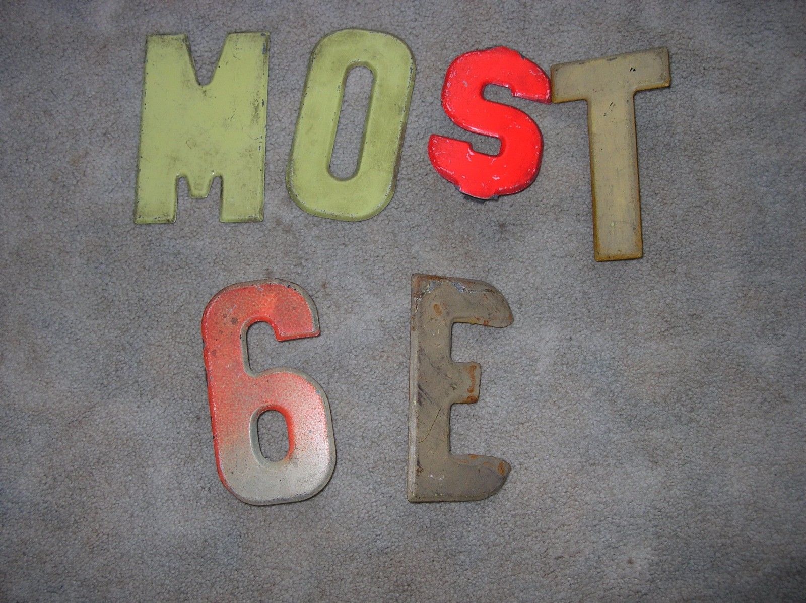 Title (ebay affiliate link): Vintage Set of 6 Cut Out Metal Letters Old Gas Station Sign 7 1/2"