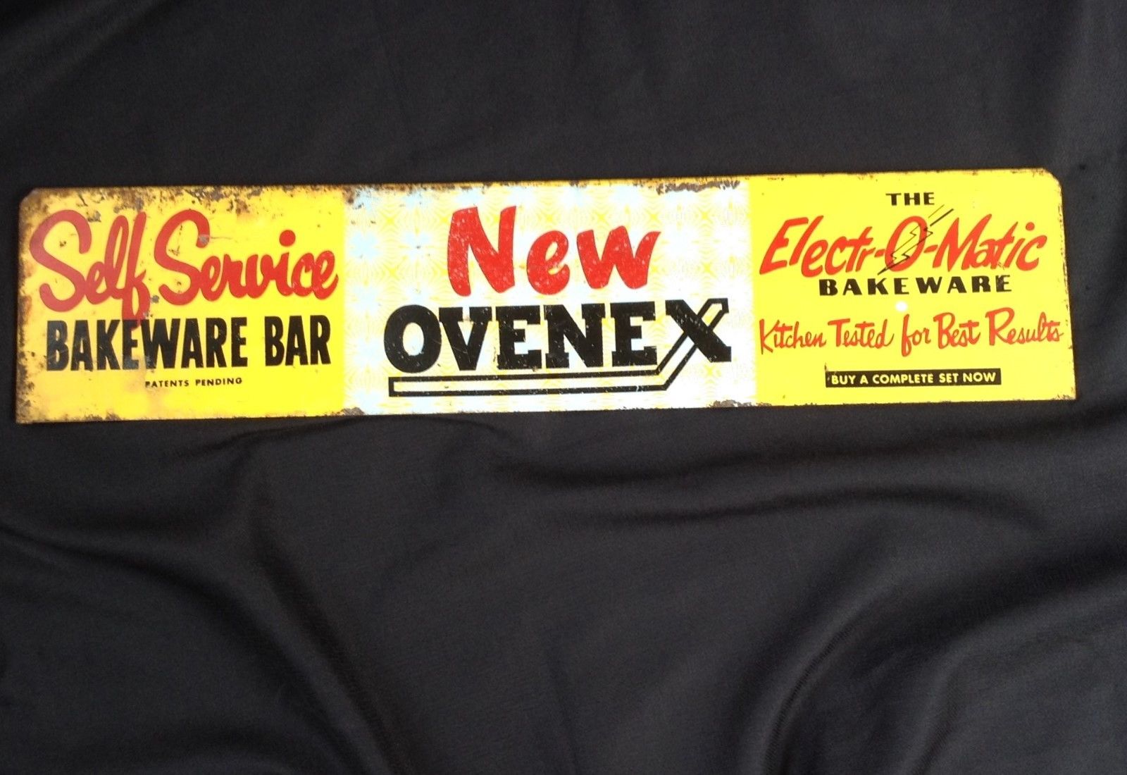 X RARE!! ANTIQUE NON PORCELAIN OVENEX BAKEWARE COUNTRY DOOR PUSH STORE ART SIGN
