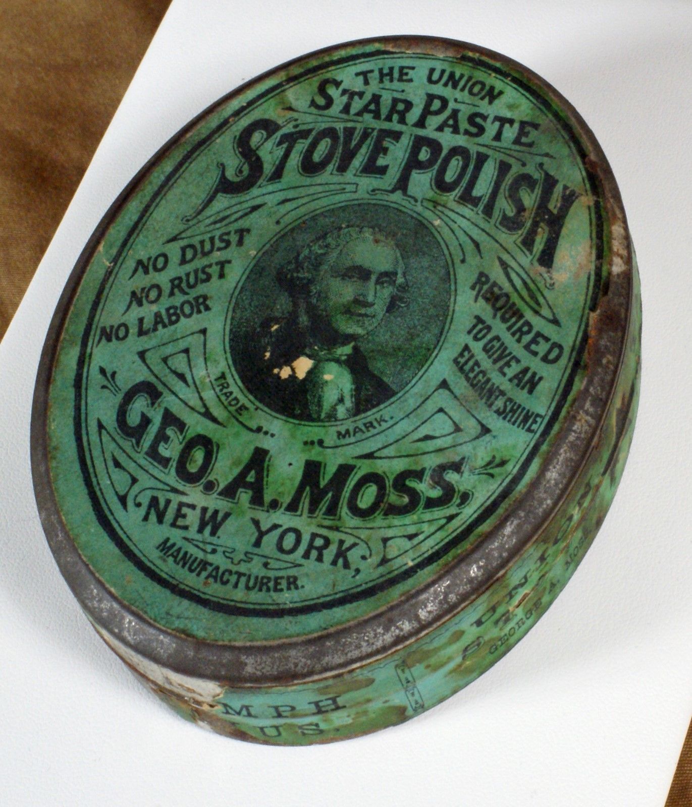 Title (ebay affiliate link): Antique Star Paste Stove Polish Tin Can, Geo A Moss, NY George Washington Image