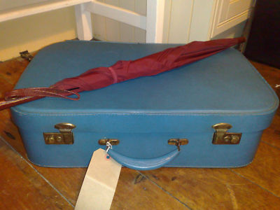 Title (ebay affiliate link): Vintage Small 1950's Blue Suitcase Shabby Chic Storage
