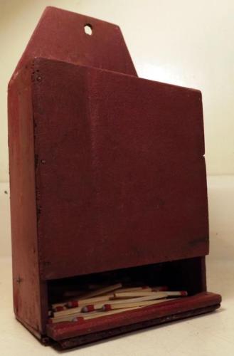 Title (ebay affiliate link): Primitive Antique Hanging Match Safe Made from Cigar Box Old Red Stain c1930s