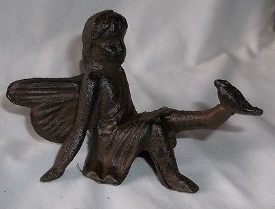 Title (ebay affiliate link): Cast Iron Sitting Angel / Cherub With Bird Cherub Garden Statue Fairy