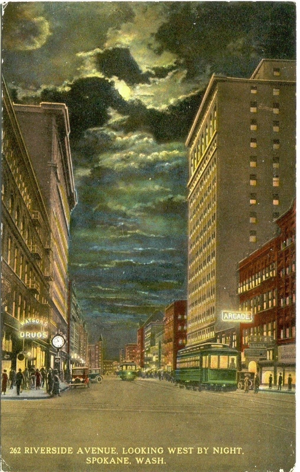 Title (ebay affiliate link): Spokane, WA, Riverside Avenue Looking West By Night