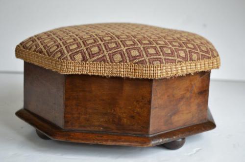 RARE ANTIQUE VICTORIAN FOOTSTOOL with Treacle Glaze Pottery SPITTOON 1830s-50s