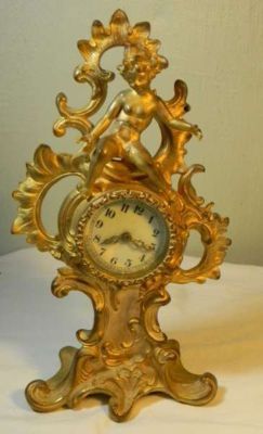 Fab Antique New Haven Mantel Clock Art Nouveau w Putti