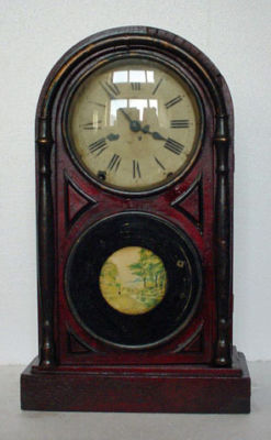 ANTIQUE ROMAN NUMERAL BLACK GLASS PANEL MANTLE CLOCK