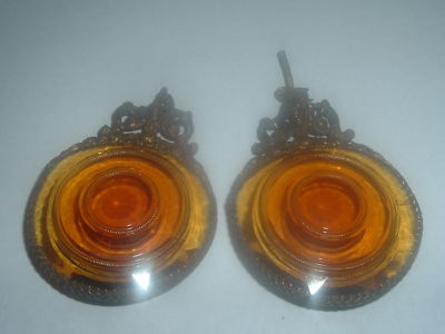 2 Antique Vintage Clock Pendulums Amber Glass PARTS