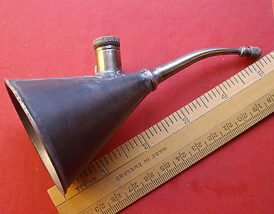 Antique Cone shape pop bottom Oil can oiler Brass & Tin use coin to open