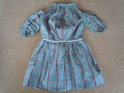 Lovely Antique Victorian Handmade Plaid SILK DOLL DRESS