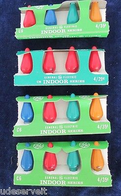 Title (ebay affiliate link): C6 Cone Tapered Ribbed Christmas Lights Original Box Lot 4 Red Blue Green Gold