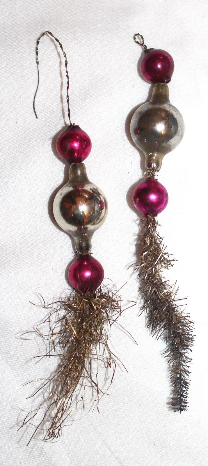 Title (ebay affiliate link): Two late 1890s Three Bead and Silver Tinsel Ornaments. Germany.