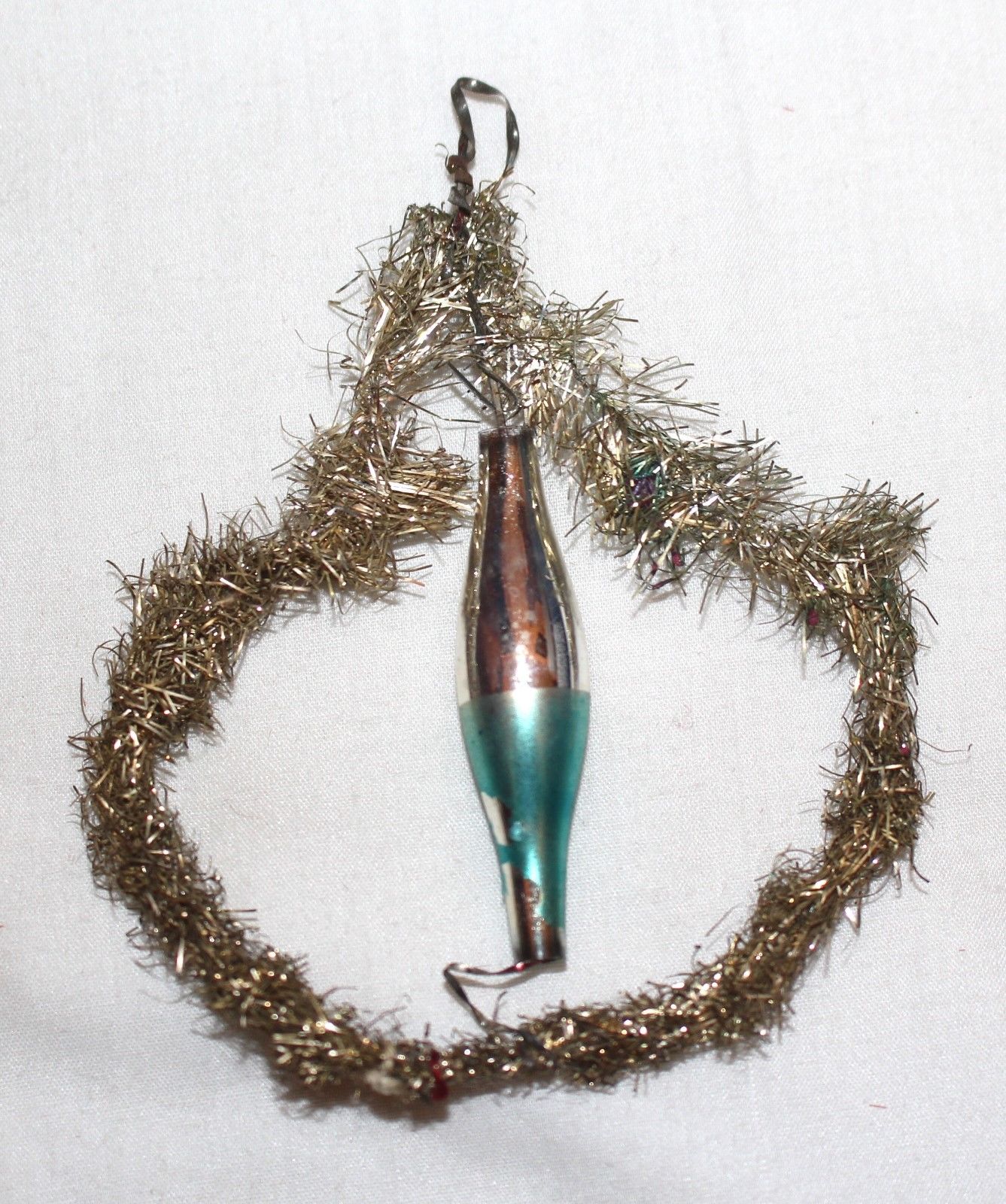 Title (ebay affiliate link): Late 1890s Oval Glass Bead and Silver Tinsel Wire Ornament. Germany.