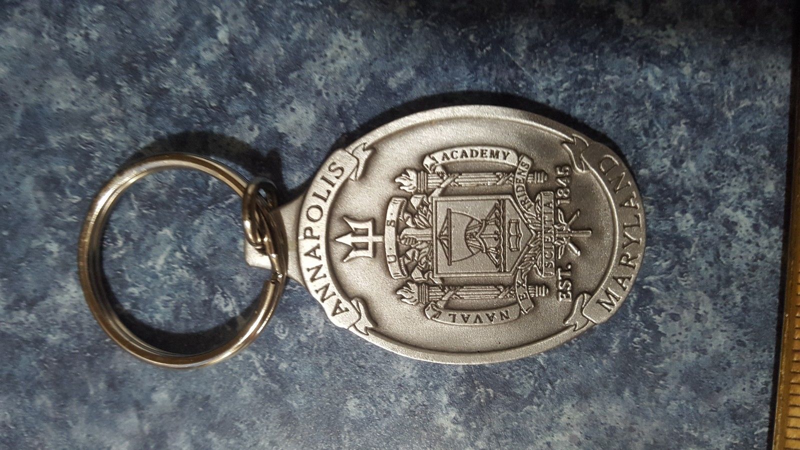 Title (ebay affiliate link): Vintage Annapolis US Naval Academy Solid Pewter Key Chain Navy