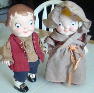 Title (ebay affiliate link): 2 - Antique Campbell Soup Dolls? dressed like Pilgrims approximately 10 in. tall