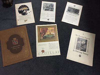 1925,1926,1927 original advertisements and sales catalog for Cadillac; six piece