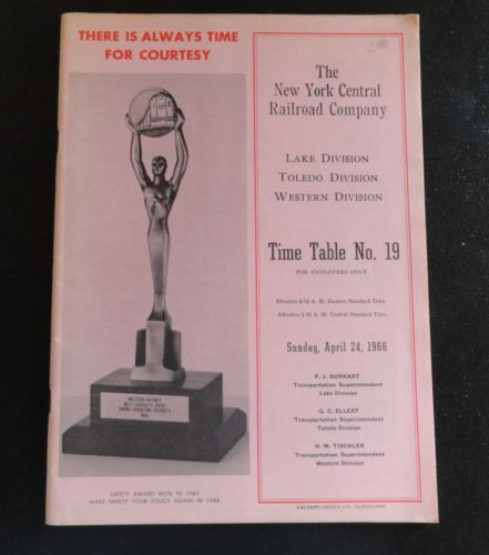 Title (ebay affiliate link): New York Central Railroad Co Time Table 19 April 24, 1966 Lake Toledo Division