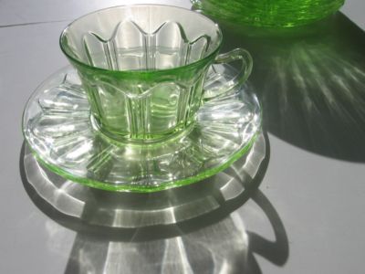 Title (ebay affiliate link): Dpression glass Green taea Cup Knife & Fork(Glasswaer)