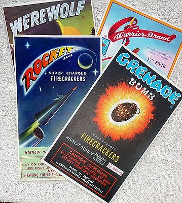 (4) FIRECRACKERS LABELS-Grenade, Werewolf, Warrior, Rocket, NM, free shipping
