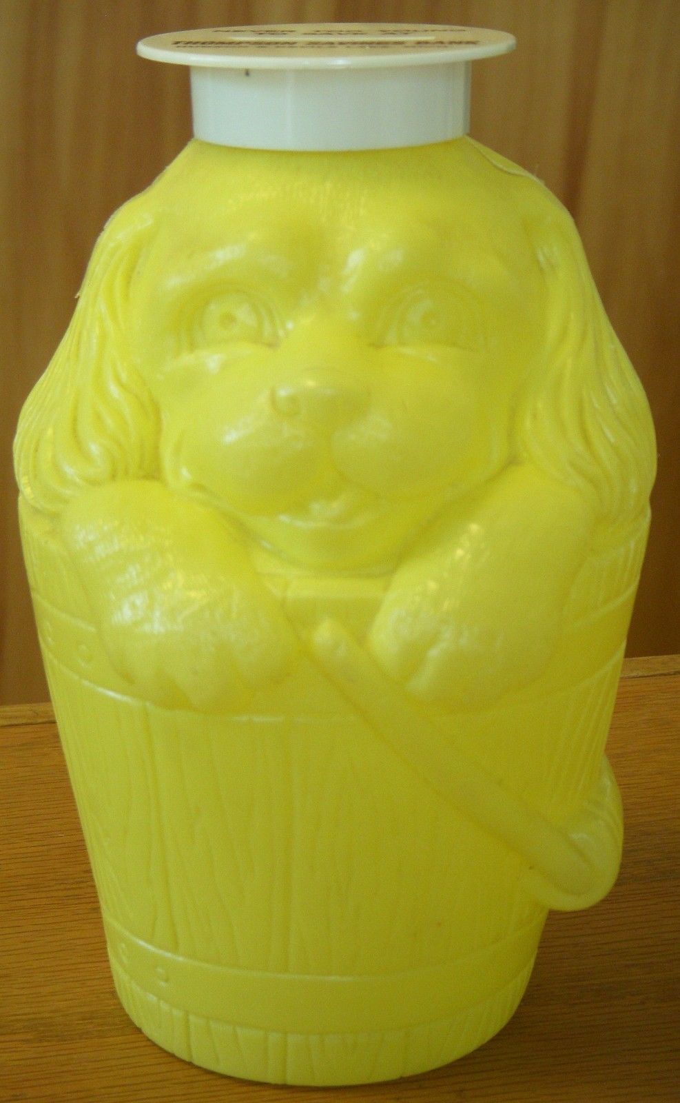Vintage 6.5 Inch Puppy Dog Plastic Yellow bank Thompson Savings Devils Lake, MI
