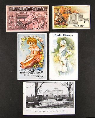 4 Victorian Piano & Furniture Trade Cards, 1 Post Card