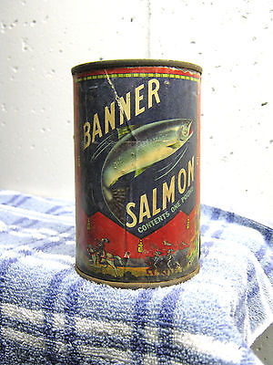 BANNER SALMON SEAFOOD FISH COUNTRY STORE SEATTLE TIN CAN