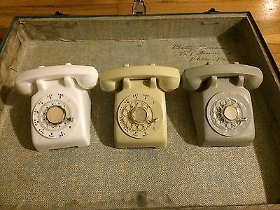 Title (ebay affiliate link): 1960s Salesman Sample Rotary Phone Lot | White Beige Gray