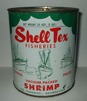 Title (ebay affiliate link): VINTAGE SHELL TEX FISHERIES SHRIMP COLLECTIBLE ADVERTISING CAN - HTF