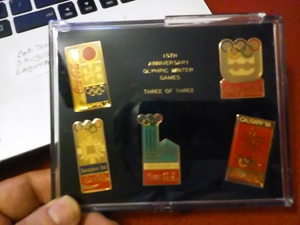 Title (ebay affiliate link): 1983 15th Anniversary Winter Olympic Coca-Cola Pin Set 1972,1976,1980,1984,1988