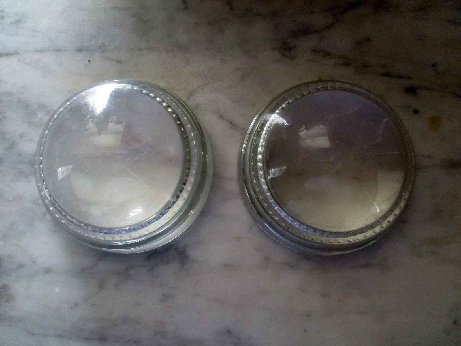 Title (ebay affiliate link): (2) Antique Round Clear Magnifying Glass Paperweights Interior Ruffled Border