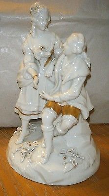 ANTIQUE GERMAN LADY & GENT FIGURINE STATUE 5-POINT CROWN N MARK