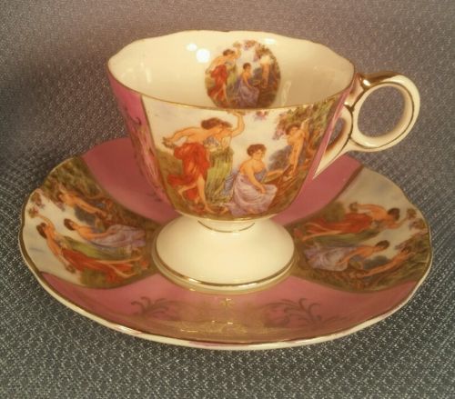 Title (ebay affiliate link): VINTAGE PORCELAIN TEA CUP SAUCER SET ROYAL HALSEY L M VICTORIAN CUPID