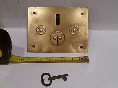 Antique Trunk Lock with and Key Solid Brass Star Lock Works 1877 Patent