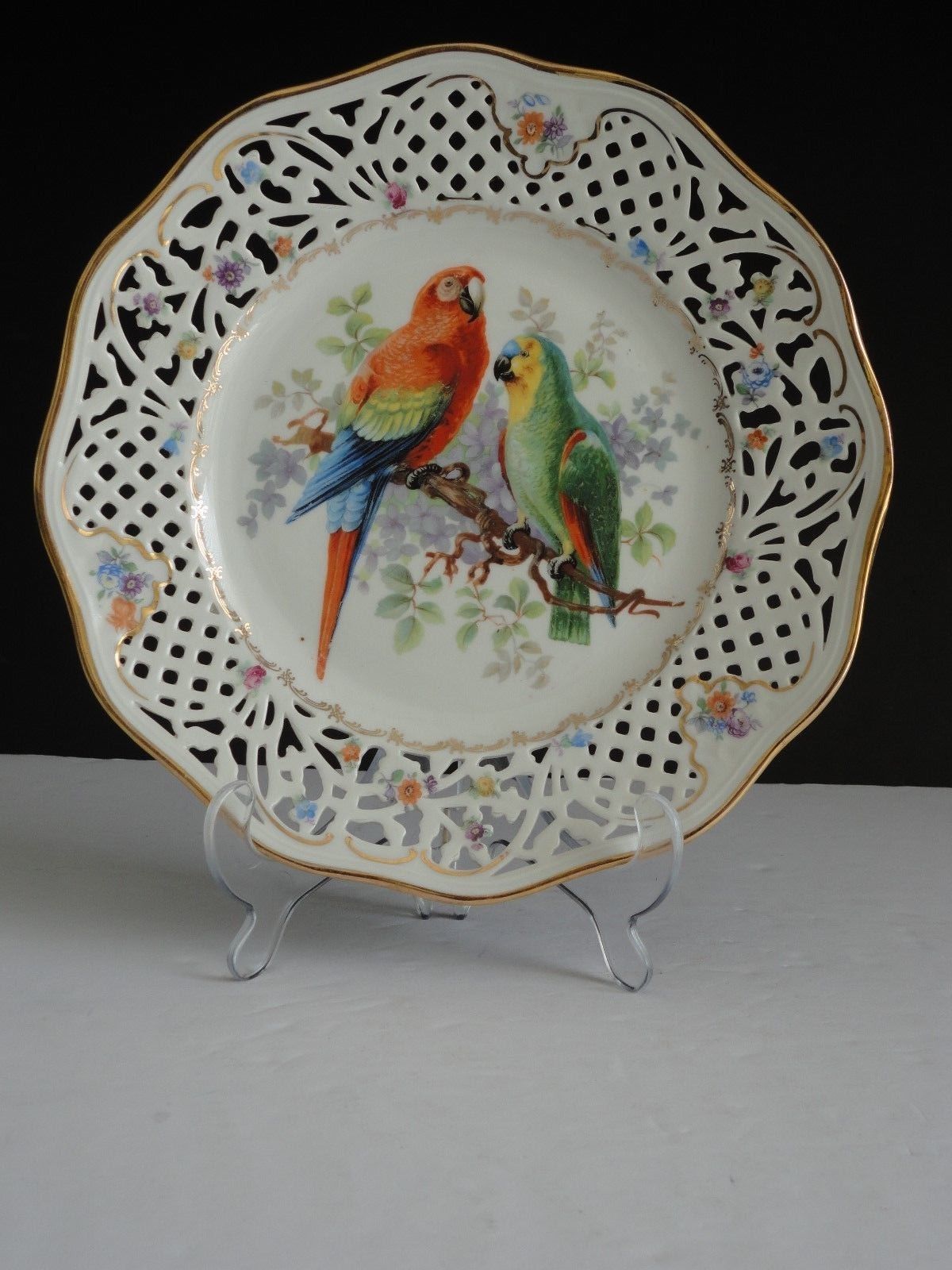 Title (ebay affiliate link): Schumann Bavaria Porcelain PARROTS Reticulated Border Cabinet Plate 10.5" #2