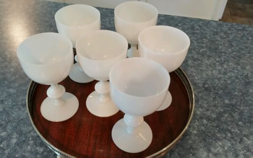 Title (ebay affiliate link): (6) Portieux Vallerysthal White OPALINE Milk Glass WINE GOBLETS - Rare